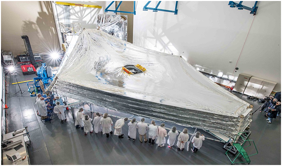 尽管已经远离热源,但还要尽力遮住可能的外界能量,比如地球辐射。然后詹姆斯韦伯就要打着这么一把五层的“遮阳伞”。
