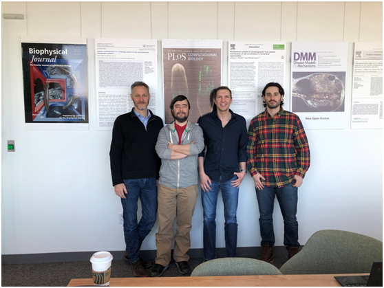 xenobots 3.0的设计团队(左起):乔西·邦加德,佛蒙特大学;迈克尔·莱辛,塔夫茨大学和哈佛大学wyss研究所;道格拉斯•布莱克斯顿,塔夫茨大学;山姆·克雷格曼,塔夫茨大学和哈佛大学wyss研究所。图片来源:塔夫茨大学