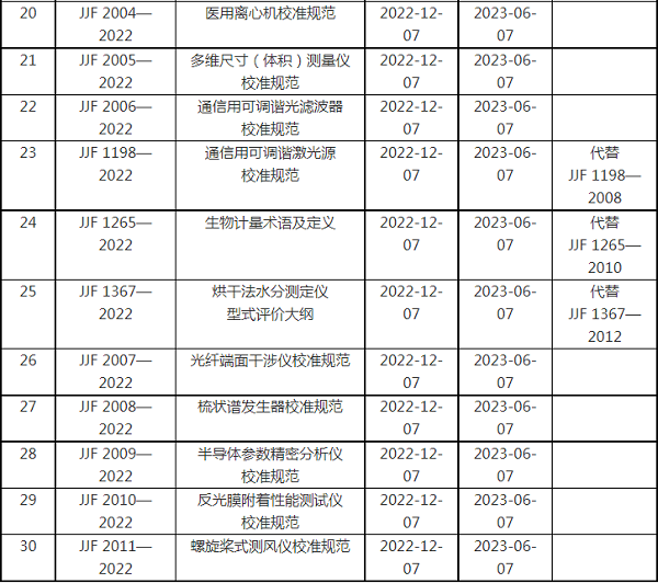 《直流标准电能表检定规程》等30项国家计量技术规范名录