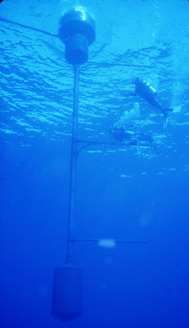 光学浮标有一个在水下延伸的中心桅杆。桅杆有三个杆状臂,每个臂上都有收集光线的光纤收集器。光纤收集器检测深度分别为1米(3.3英尺)、5米(16.4英尺)和9米(29.4英尺)。在中央桅杆的底部是摄谱仪,用来测量三个深度中每一个深度的光作为波长函数。