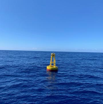 海洋光学浮标(moby)位于夏威夷海岸20公里处。它由两个浮标组成:光学浮标和系泊浮标。光学浮标包含延伸到海水中的传感器,而系泊浮标将光学浮标保持在适当位置。这是2021年1月部署的最新系泊浮标,作为moby-refresh项目的一部分,是对海洋颜色传感器的升级。资料来源:莫斯登陆海洋实验室,海洋光学浮标项目。