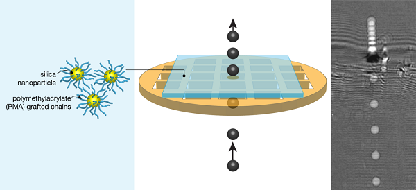 这些薄膜由称为纳米二氧化硅的微小玻璃球制成,每个球都覆盖有称为聚甲基丙烯酸酯 (pma) 的聚合物链。为了生产这些聚合物接枝的纳米颗粒(pgns),kumar的实验室在纳米颗粒的曲面上生长了pma链,使每条链的一端固定。