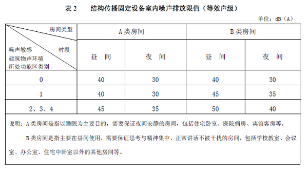 国家标准gb 22337-2008《社会生活环境噪声排放标准》规定,在社会生活噪声排放源位于噪声敏感建筑物内情况下,噪声通过建筑物结构传播至噪声敏感建筑物室内时,噪声敏感建筑物室内等效声级不得超过下表规定的限值: