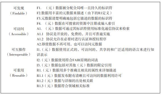 在数字化语境中需在数据可靠和可持续使用的条件下开展数据驱动的研究,这些要求也可被涵盖于数据管理“四可( fair)”法则,其由4个维度的15款细则构成,意为数据是可发现的( findable)、可访问的( accessible )、可互操作的( interoperable )和可重用的( reusable)。