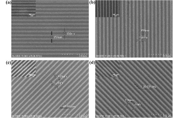 图3. 四种角度(a)0°,(b)45°,(c)90°,(d)135° al光栅形貌。