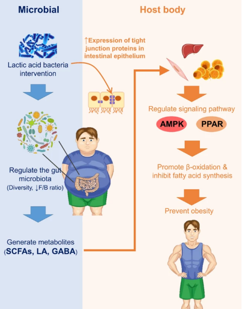 肥胖是当代人最困扰的问题之一,严重的肥胖甚至可能导致2型糖尿病、心血管疾病和非酒精性脂肪肝等疾病。越来越多的证据显示植物乳杆菌可能是改善脂质代谢抗击肥胖的有效方式之一,植物乳杆菌可以抑制机会致病菌的生长,促进共生菌的增殖,调节肥胖个体肠道微生物的组成,增加双歧杆菌等益生菌的含量,介导 ppars 等代谢途径,改善机体的新陈代谢。